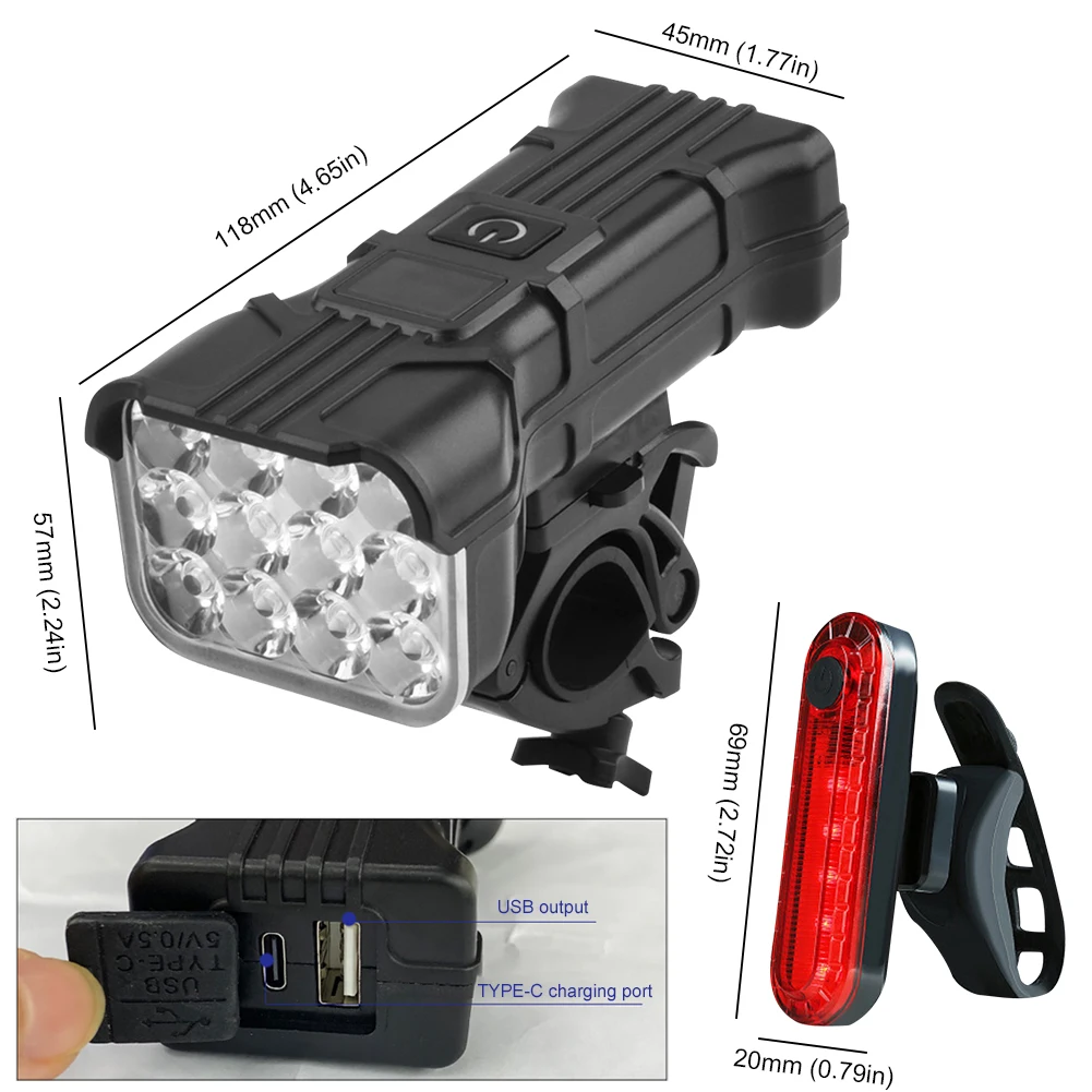 1.Superior Illumination: Illuminate your path with confidence using our bicycle front light. Carefully selected 6500K color temperature imported light beads ensure optimal brightness and clarity. With 12 extra-large light beads, our light provides a wider and brighter illumination range compared to traditional bike lights.