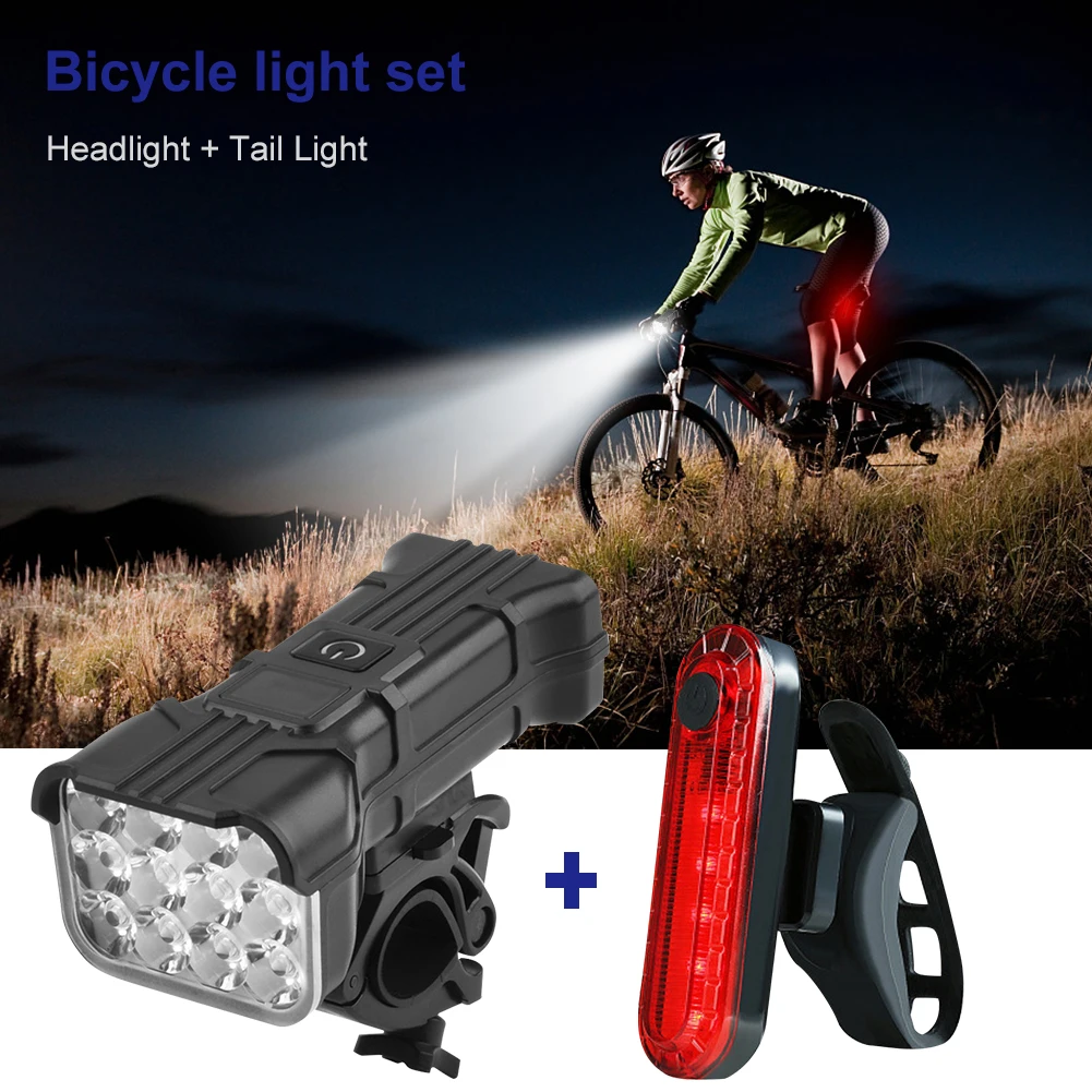 Bike Front and Rear Lights Bicycle Front Lights 12 Beads Bike Rear Light 360 Degree Rotating IP65 Waterproof Bicycle Accessories